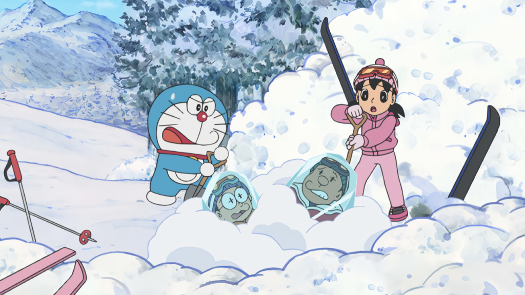 ★ Kamar dan kota Nobita telah berubah menjadi pegunungan Hokkaido yang diselimuti salju, dan semuanya menjadi kacau balau!